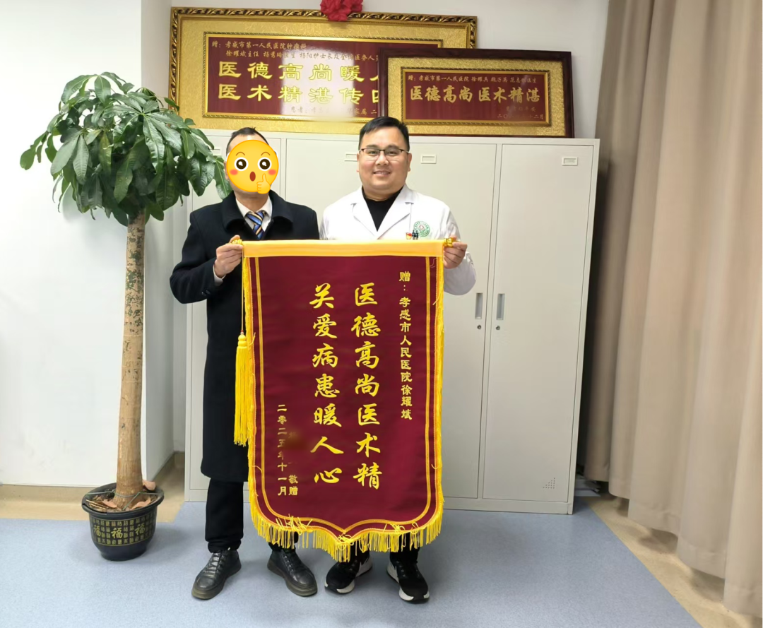 荆楚网(湖北日报网)讯(通讯员:王梅)近日,孝感市第一人民医院肿瘤科洋溢着温暖。杨患者郑重地将一面绣有“医德高尚、医术精湛、慈悲患者、感动人心”的鲜红锦旗递给肿瘤科副主任徐耀斌。这面锦旗不仅传达了杨先生对徐耀斌先生的诚挚谢意,也彰显了医患之间的深厚情谊。
